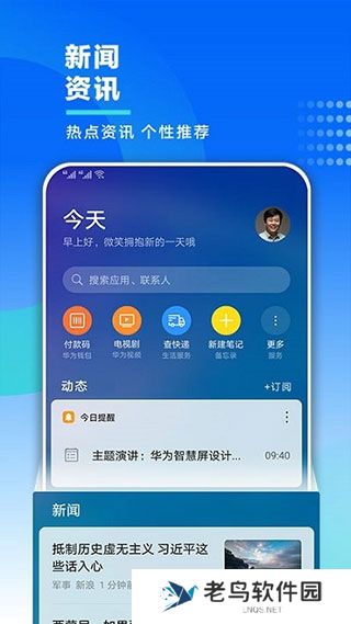 智慧助手今天app是一款专为华为手机而打造的智慧生活服务平台,加入到平台中后就会自动的进行开启智能服务助手,新闻、日常、出行、天气、导航、快递等等服务都可以在这里进行享受到,让自己的日常生活可以更为的便捷。经常使用的功能可以自定义的进行选择添加到首页当中,确保自己每次进入到智慧助手中都可以进行看到并使用。