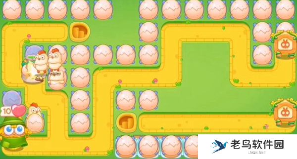 3、地图下方的道具清理掉之后,在上方、下方水池和中间区域继续补充鸡蛋,最后能够通关的布局可以参考下图所示: