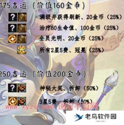 (25%)10金币+辅助装备+4费卡*2+5费卡*3