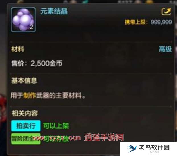 4、元素结晶是用于合成锻造武器的重要材料之一,需求量会比较大,大家可以在游戏前期就多攒一些,多余的材料也可以上架拍卖行出售换取泰拉。