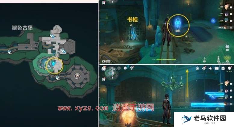 4、攻击蓝色装置,左侧出现传送门,从传送门飞上去找到书柜,将左侧的魔导书捡起来归还,然后进入后面的空间开启珍贵的宝箱,就可以获得【遗落的曲谱残页·其二】
