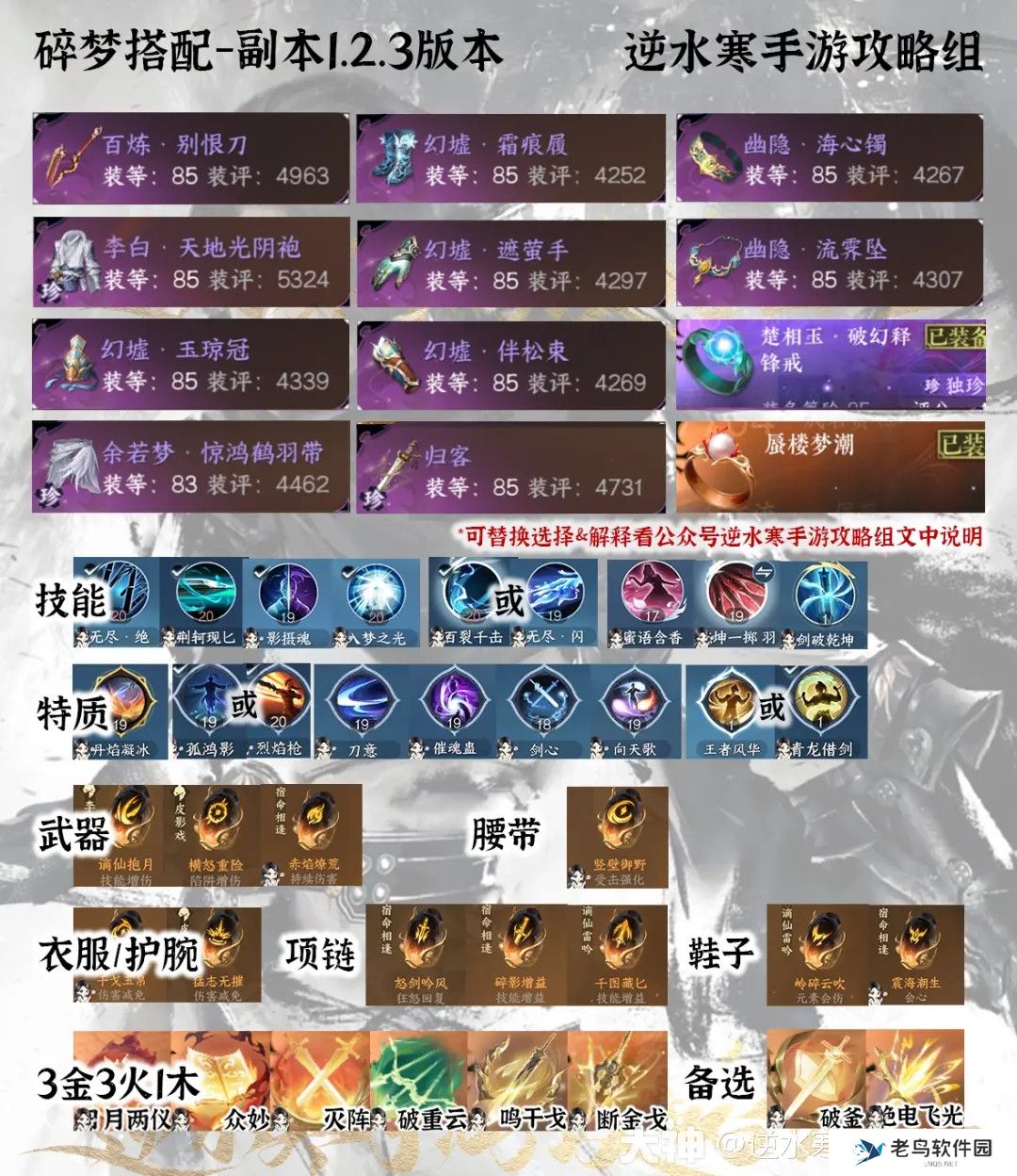 逆水寒手游1.2.3碎梦怎么玩?很多玩碎梦的小伙伴到了1.2.3不知道如何搭配内功和装备,今天小编就为大家分享不同场景下的毕业配装,希望对各位玩家有所帮助,废话不多说快来抄作业吧!