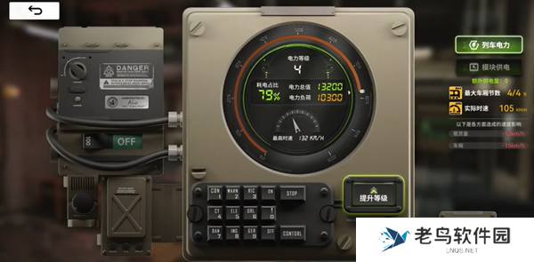 1、在主界面点击【电力】系统,可以进入界面查看列车等级,通过消耗特定材料及金币可以进行升级。