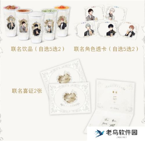 购【联名透卡套餐】,可获得自选饮品以及自选角色透卡。