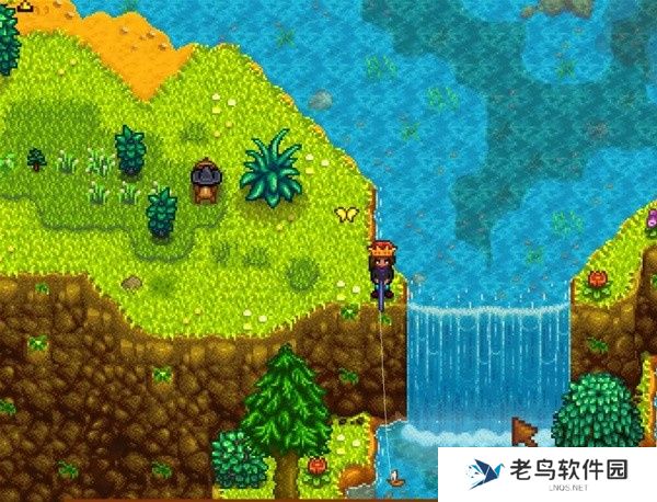 2、玩家可以来到下图所示的水边位置进行垂钓。钓鱼时有一个小技巧,在抛竿时可以使用方向键控制鱼钩的方向。