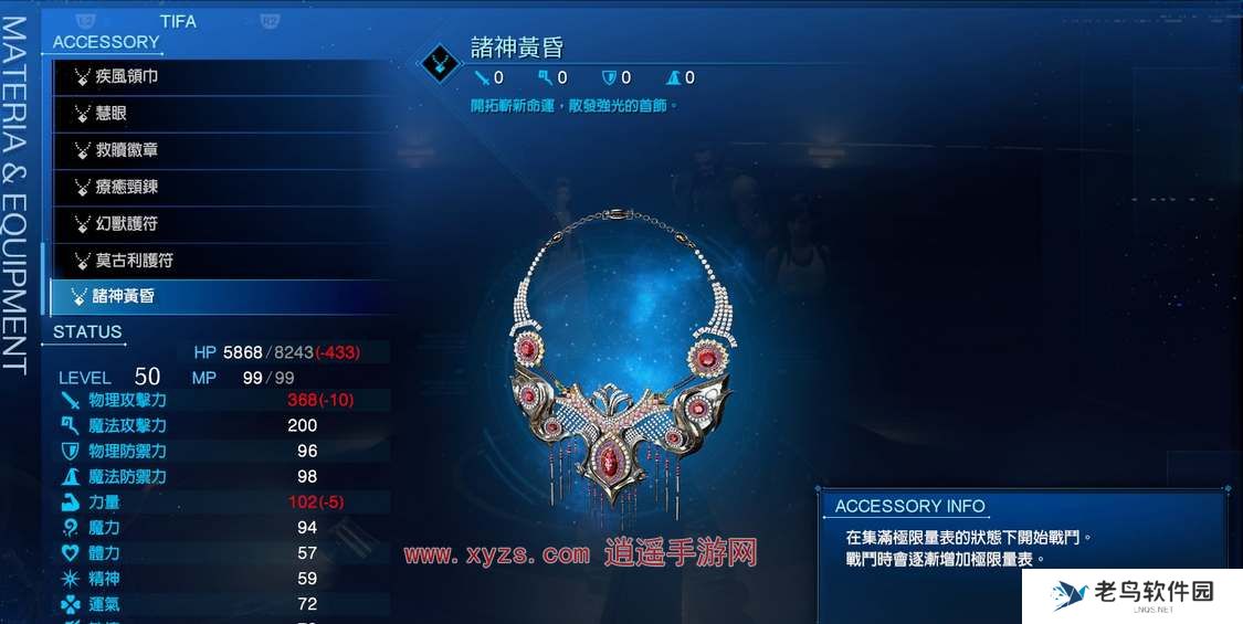3、诸神黄昏饰品属性面板如下图所示,是目前游戏中最强的饰品,可以提供极限能量加成。