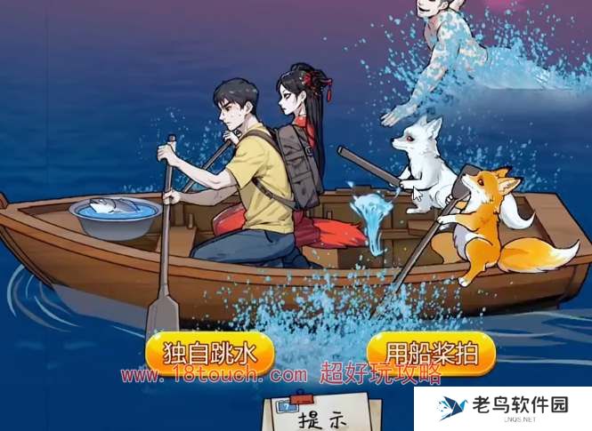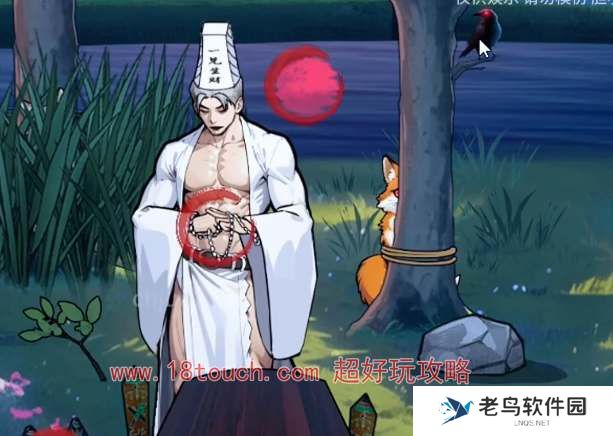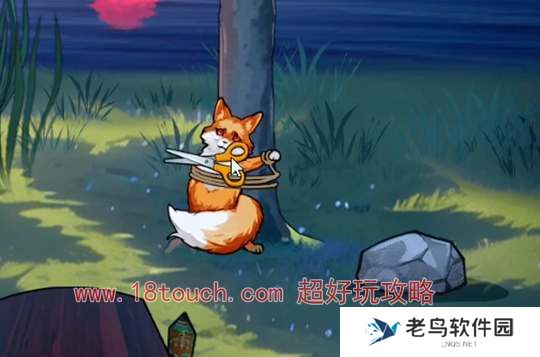 3、捡起地上的树枝赶走乌鸦可以引走白无常,捡起棺材旁的剪刀,先救白色的狐狸。移开石头可以获得橙色的剪刀救下橙色狐狸。