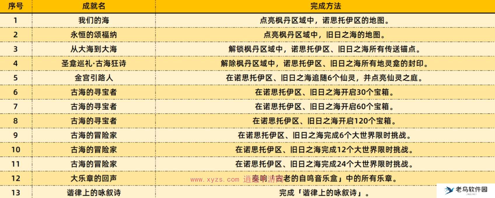 1、新版本一共新增了38个成就:「天地万象」19个、「古海狂诗」13个、「挑战者·第九辑」6个。详细的成就以及达成条件如下图所示。