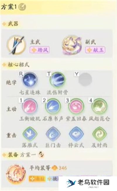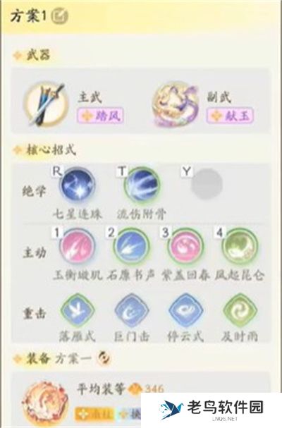 这个流派走的是输出路线,全真教轻剑主武器远程攻击能力强,副武器的白驼山棍法提升近战输出,适合追求强度的氪金玩家来选择这种搭配。
