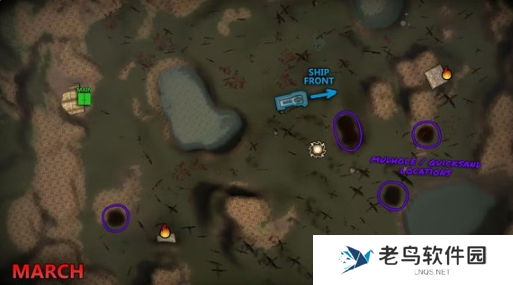 March 森林沼泽,从船上可以看到设施的灯光,注意避开中间的大坑。