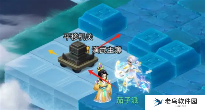 机关三:把机关按照黄箭头推进圆圈格子处,人物按照红箭头走。