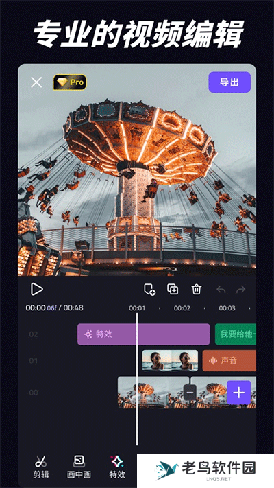 3、内置海量视频剪辑素材库,增添电影级的音效与特效,短视频的画面表现更强。