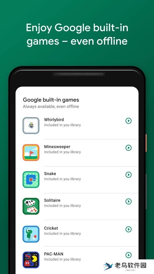 1、内置离线Google游戏,即使没有网络也能畅玩吃豆人、纸牌接龙、贪吃蛇和飞镖游戏。