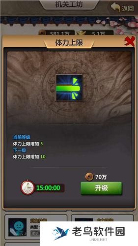 体力上限跟体力恢复也不是很建议升级,这里有一点需要注意的是,机关工坊升级升级是跟等级挂勾的。如果你的等级跟不上,家园有空余的建造时间可以考虑升级这2点。