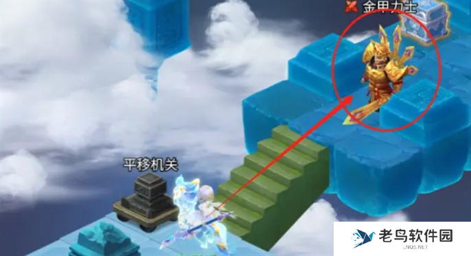 机关三:把机关按照黄箭头推进圆圈格子处,人物按照红箭头走。